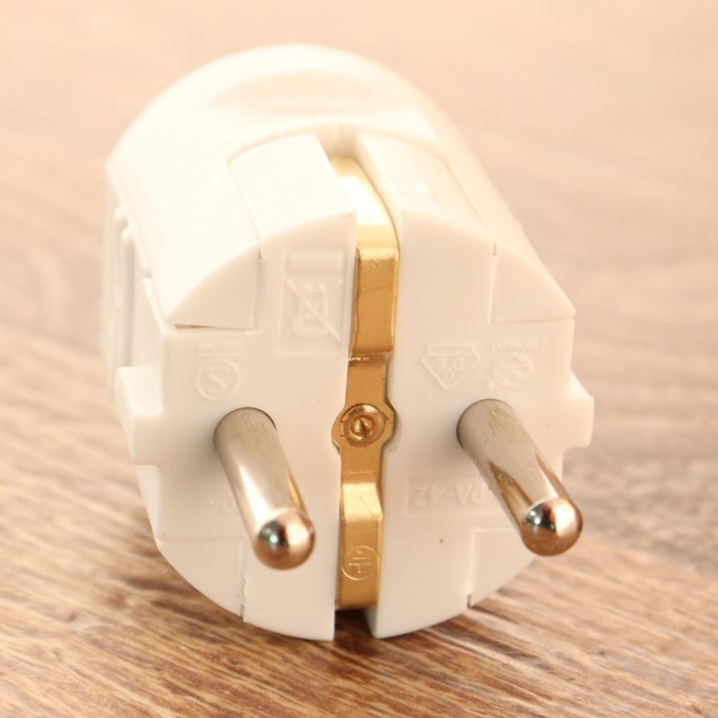 Ștecher oscilant cu împământare GAO cu priză spate. Carcasă din plastic, demontabilă cu șurub 16A 250V.