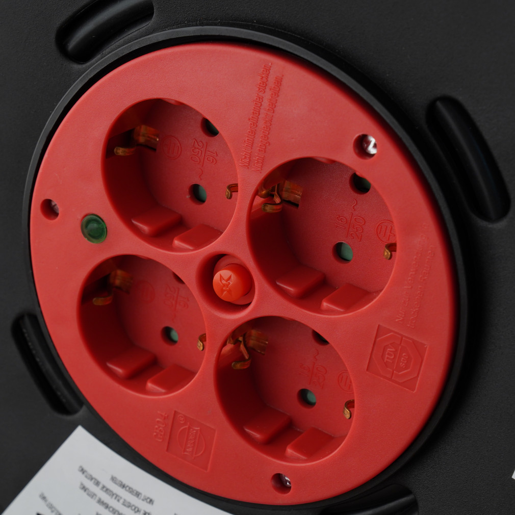 Bobină de cablu din plastic cu 2 poli și suport metalic, 20 m. Cablu MT 3x1,5 mm², 4 prize de protecție Stilo STI781