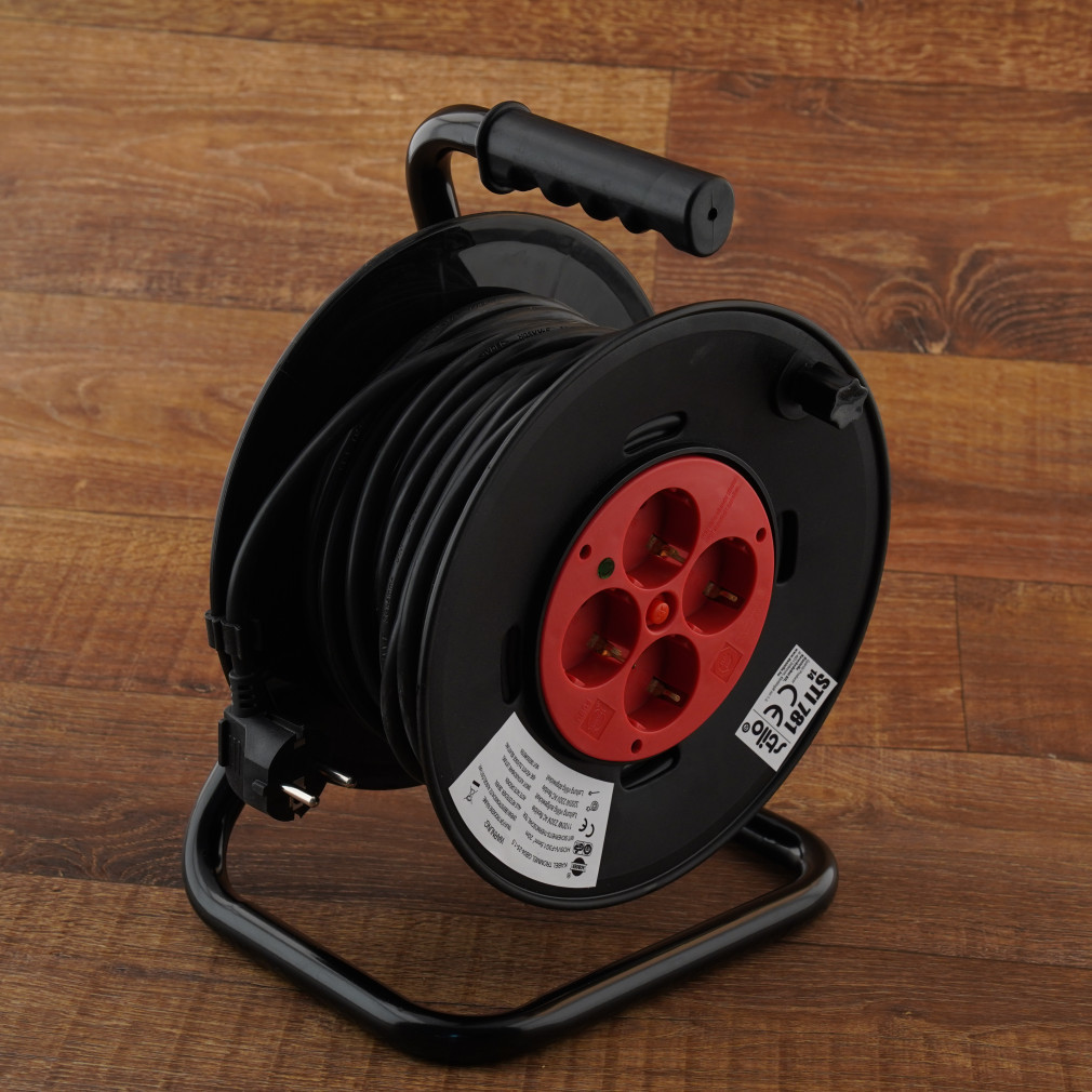 Stilo Tambur de cablu din plastic cu 2 poli și suport metalic, 20 m. Cu cablu MT 3x1,5 mm² - STI781