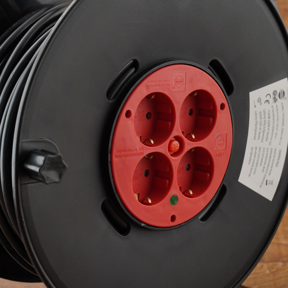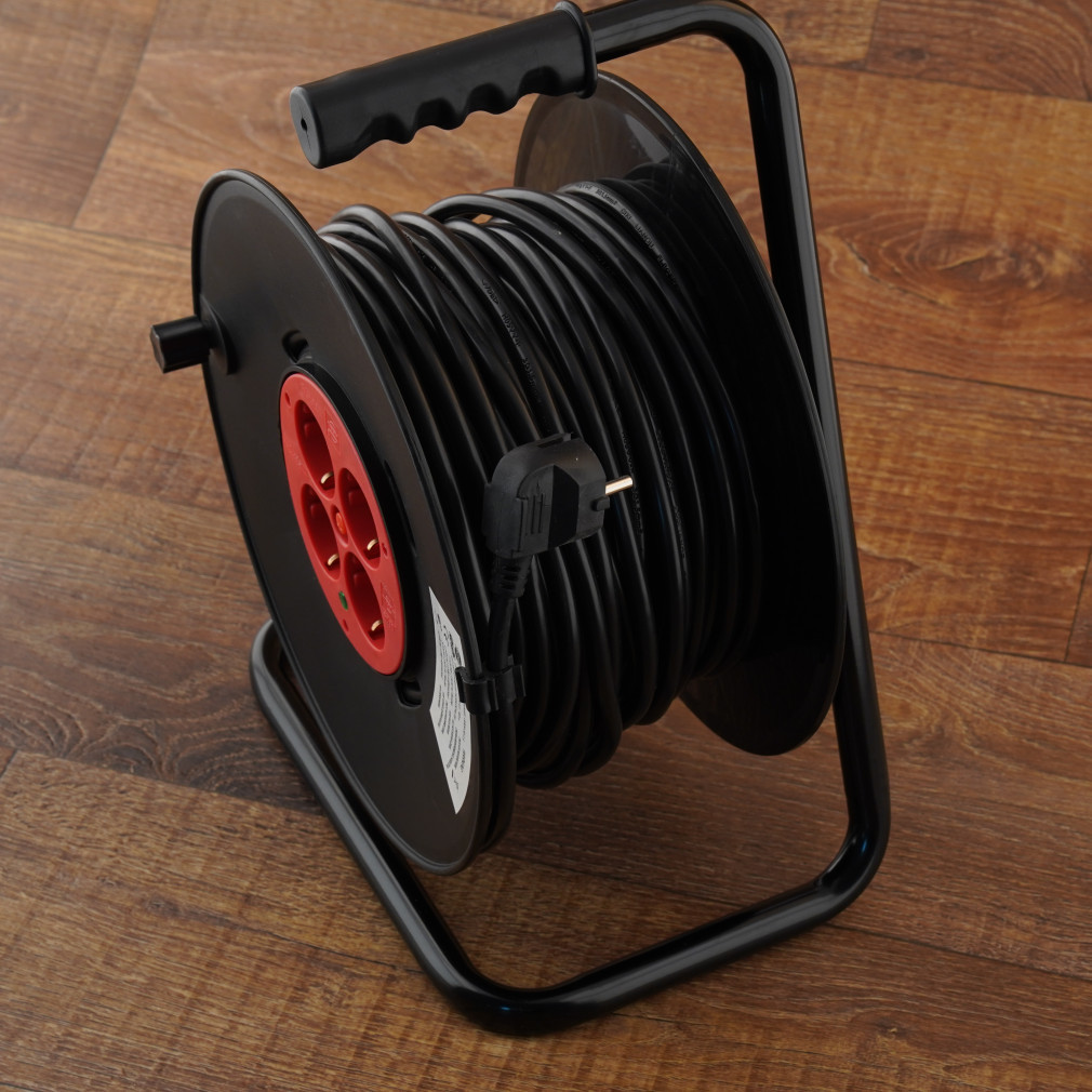 Bobină de cablu din plastic cu 2 poli și suport metalic, 40 m. Cablu MT 3x1,5 mm², 4 prize de protecție Stilo STI784