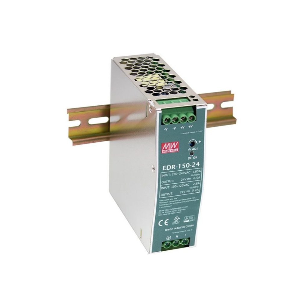 Sursă de alimentare comutabilă, șină DIN Vin: 90-264 VAC/120-370 VDC, Vout: 24 VDC (0-6,5 A), P: 150 W Mean Well EDR-150-24