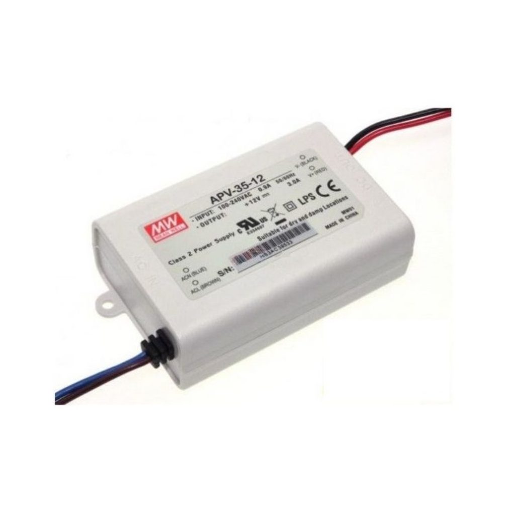 Sursă de alimentare LED Mean Well cu o singură ieșire, APV-35-12\nVin: 90-264 VAC/127-370 VDC, Vout: 12 VDC / 0-3 A, P: 36 W