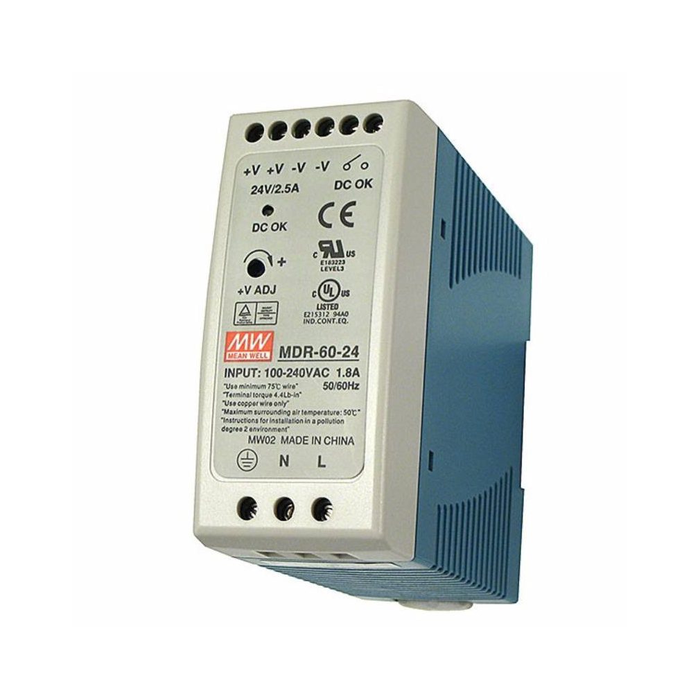 Sursă de alimentare mini cu comutare, montabilă pe șină DIN Vin: 85-264 VAC/120-370 VDC, Vout: 24 VDC (0-2,5 A), P: 60 W Mean Well MDR-60-24