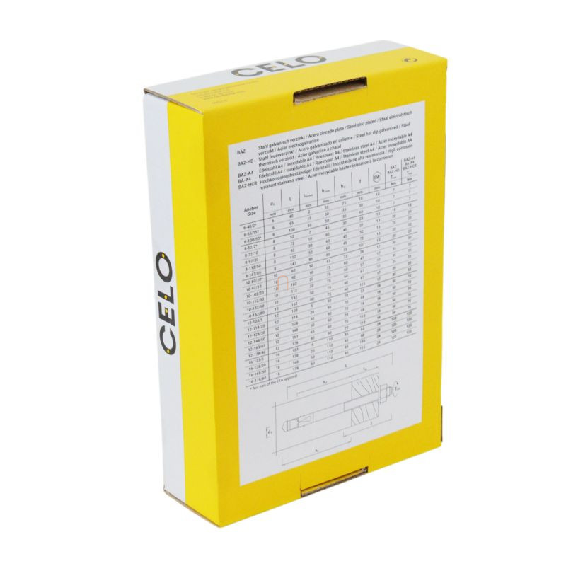 Șurubul de bază cu auto-tensionare CELO BAZ Opcio 1 poate fi utilizat într-o gamă largă de aplicații, atât în beton fisurat, cât și în beton nefisurat. În cazul fisurării, acesta are un efect de răspândire. Clasa de rezistență la foc R120 oferă o siguranță mai mare în caz de incendiu. Designul cu filet lung asigură o mare flexibilitate de utilizare. Capacitate de încărcare ridicată, fixare sigură chiar și cu distanțe mici de fixare și margini. Datorită gamei largi de materiale și dimensiuni disponibile, șurubul de bază BAZ îndeplinește toate cerințele.