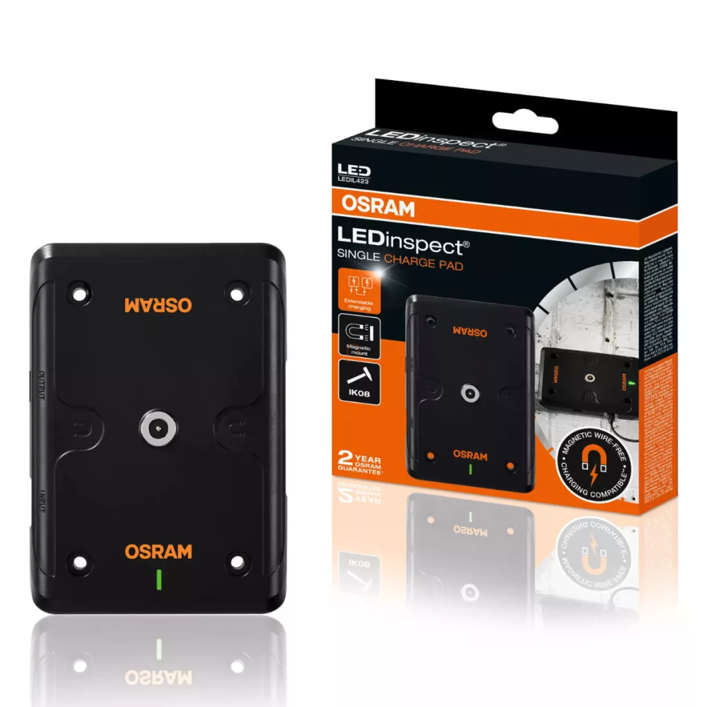 OSRAM LEDinspect SINGLE CHARGE PAD este o soluție inteligentă și practică pentru cei care utilizează lămpile profesionale fără fir Osram și doresc să le reîncarce ușor și eficient. Această stație de încărcare inovatoare permite depozitarea în siguranță și încărcarea fără fir a lămpilor compatibile, precum LEDIL421 sau LEDIL422, astfel încât acestea să fie întotdeauna gata pentru următoarea utilizare. Cu tehnologia Wire-Free, nu este nevoie să căutați sau să conectați cabluri de încărcare; pur și simplu așezați lampa pe suprafața magnetică de încărcare, unde va fi fixată în siguranță și va începe încărcarea. Designul plăcii de încărcare este adaptat provocărilor din ateliere: protecția împotriva prafului IP20 și rezistența la impact IK08 asigură că produsul poate rezista la utilizarea zilnică. Suportul poate fi montat în mai multe moduri datorită magneților încorporați și orificiilor pentru șuruburi, astfel încât poate fi atașat cu ușurință la cutii de scule, bancuri de lucru sau alte suprafețe metalice. Cu o lungime de 150,6 mm, o lățime de 106 mm și o înălțime de 150 mm, dispozitivul este compact și ocupă puțin spațiu, oferind totuși o depozitare și o încărcare stabile. Pachetul include un cablu USB-C și o sursă de alimentare, astfel încât este gata de utilizare imediată. Un avantaj suplimentar este ieșirea USB-A, care vă permite să încărcați un alt dispozitiv sau să conectați o a doua stație de încărcare la sistem. OSRAM SINGLE CHARGE PAD este alegerea ideală pentru orice profesionist care acordă prioritate muncii eficiente și utilizării fiabile a uneltelor. Este recomandat pentru mecanicii auto, tehnicienii de întreținere, ingineri și orice utilizator care dorește să-și reîncarce rapid, în siguranță și sistematic lămpile de lucru LED compatibile. Acest produs este soluția perfectă pentru cei care apreciază tehnologia modernă, ușurința în utilizare și fluxurile de lucru neîntrerupte. Dacă doriți o soluție de încărcare care nu numai că economisește timp, dar și crește eficiența atelierului dvs., stația de încărcare wireless OSRAM vă îndeplinește toate așteptările.