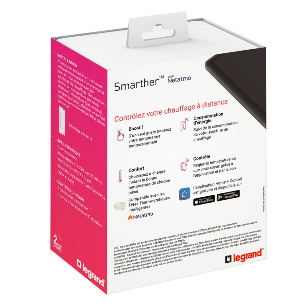 Termostat inteligent Smarther 2 Wi-Fi, 250 V~, montat încastrat, negru Legrand 049039