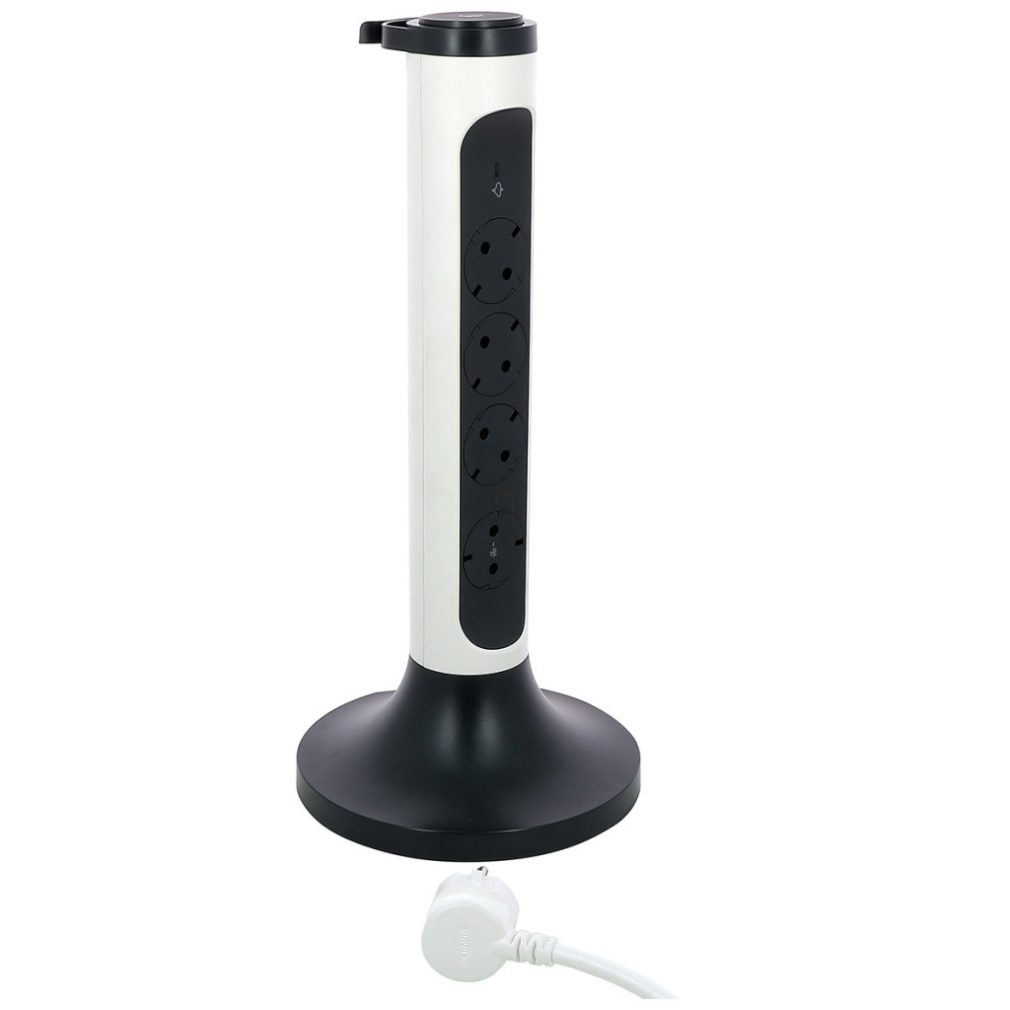 Turn de distribuție Legrand, 4x2P+F, cu protecție la supratensiune, cablu de 2 m, alb/negru - 694505