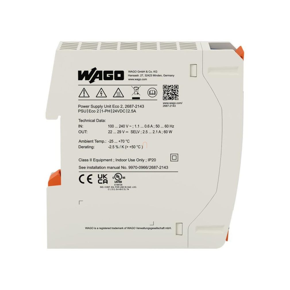 Unitate de alimentare 24 VCC 60 W 2,5 A pentru șină DIN WAGO 2687-2143 Eco2