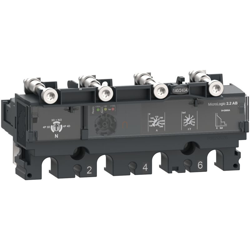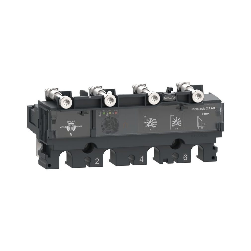 Acest MicroLogic 2.2 AB este un declanșator electronic cu 4 poli și 4 d utilizat pe întrerupătoarele ComPacT NSX 100/160/250. Această unitate de eliberare electronică cu o putere nominală de 100A este utilizată în sistemele de distribuție publică pentru a limita puterea furnizată în conformitate cu contractul de consum. Include protecție reglabilă, pe termen lung, împotriva suprasarcinii. În plus, oferă protecție reglabilă pe termen scurt și protecție instantanee fixă împotriva scurtcircuitelor. MicroLogic 2.2 AB indică suprasarcina cu LED-uri de alarmă. LED-ul verde Ready (Gata) clipește când disjunctorul este gata să se declanșeze. Unitatea de declanșare este livrată cu un sigiliu de plumb pentru a proteja setările. Acest produs face parte din arhitectura noastră EcoStruxure Power atunci când este asociat cu cadrul de bază PowerTag NSX și ComPacT NSX.