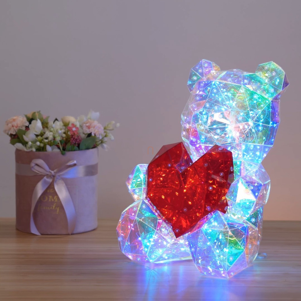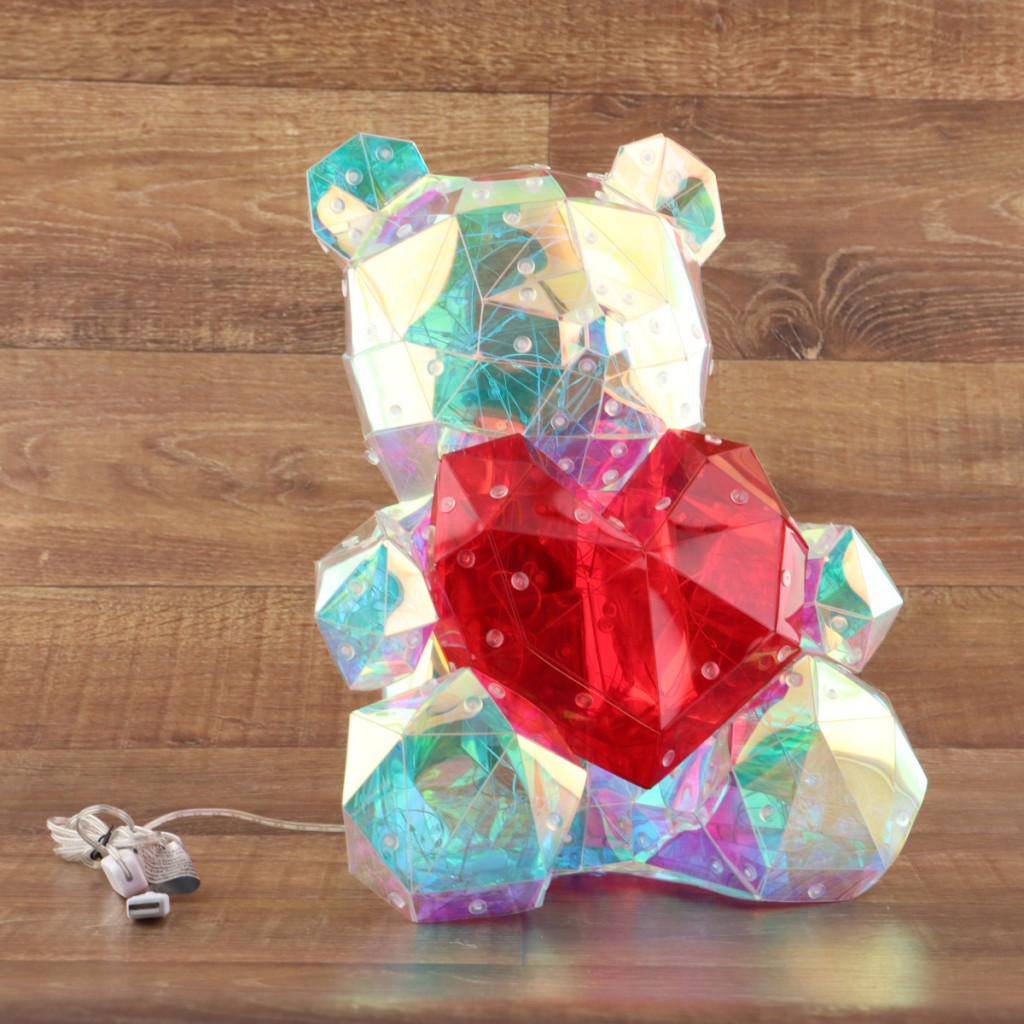 Urs holografic cu LED și inimă, 32 cm - Brondar Globo 28058