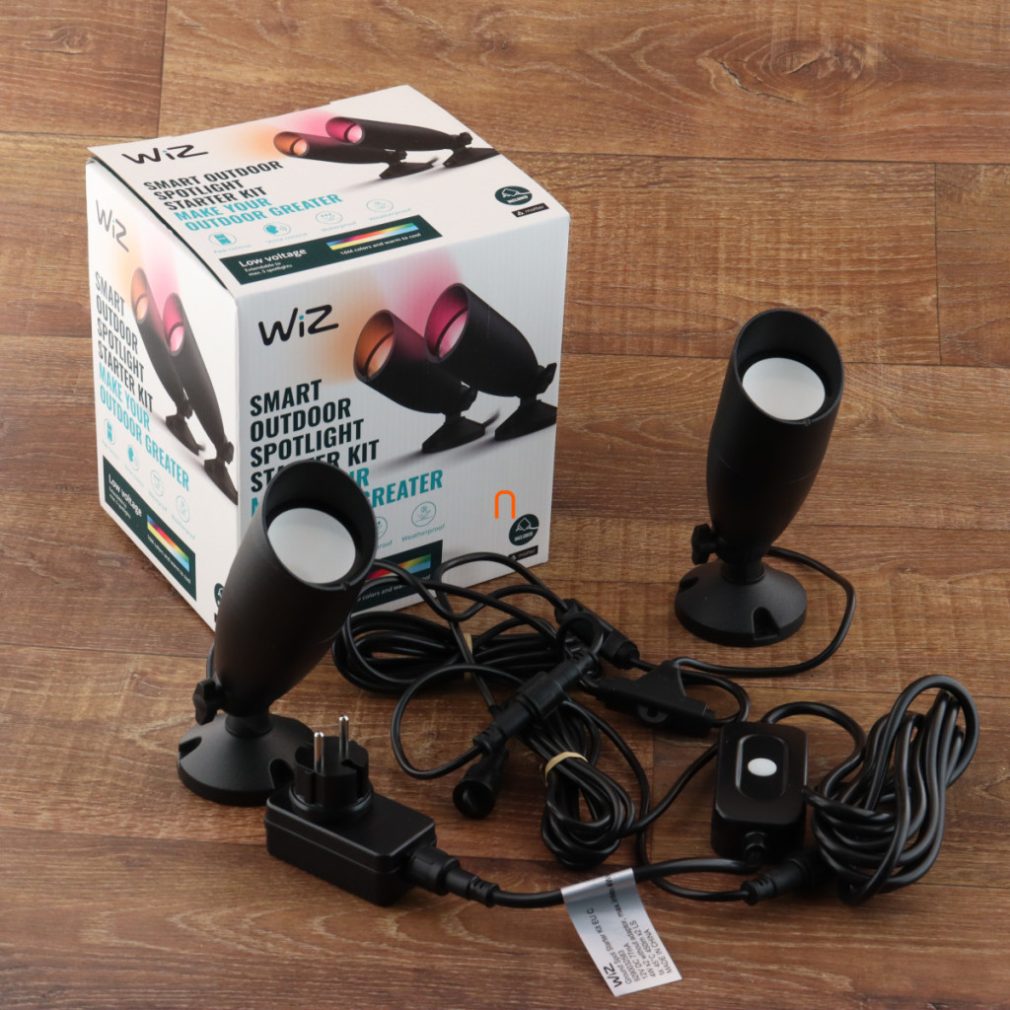 WiZ kit de pornire pentru lampă LED inteligentă de exterior, montată pe sol, cu adaptor de alimentare, 2700-5000 K, 2x10 W, 2 bucăți (Ground Spot RGBW)