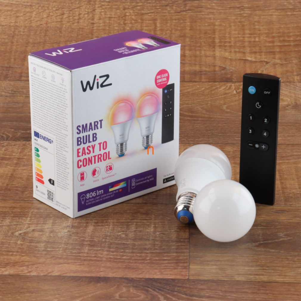 WiZ smart E27 LED cu telecomandă, opal, 8,5 W, 806 lm, 2200-6500 K +RGB, intensitate reglabilă alb și culoare - înlocuitor pentru bec de 60 W, 220-240 V, controlat prin aplicație, Wi-Fi