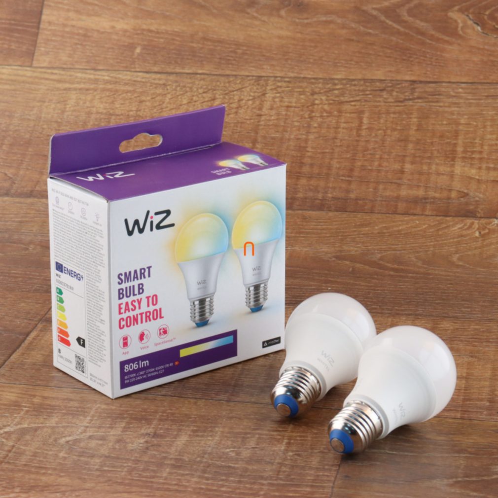WiZ smart E27 LED, opal, 8 W, 806 lm, 2700-6500 K, alb reglabil - înlocuiește becul de 60 W, 220-240 V, controlabil prin aplicație, Wi-Fi, pachet de 2 bucăți
